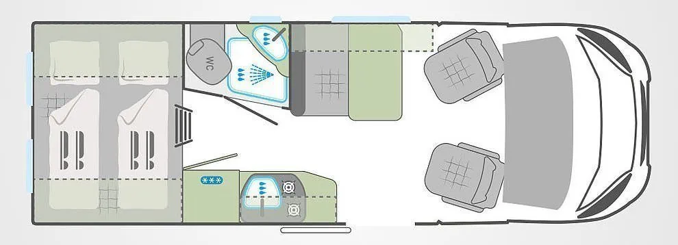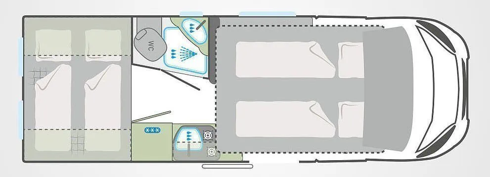 Die Aufteilung sieht gut aus. Für uns leider nichts, weil wir die Dinette auch weiter nutzen wollen, wenn die Kids im Bett sind und das geht bei dem hubbett dann leider nicht.