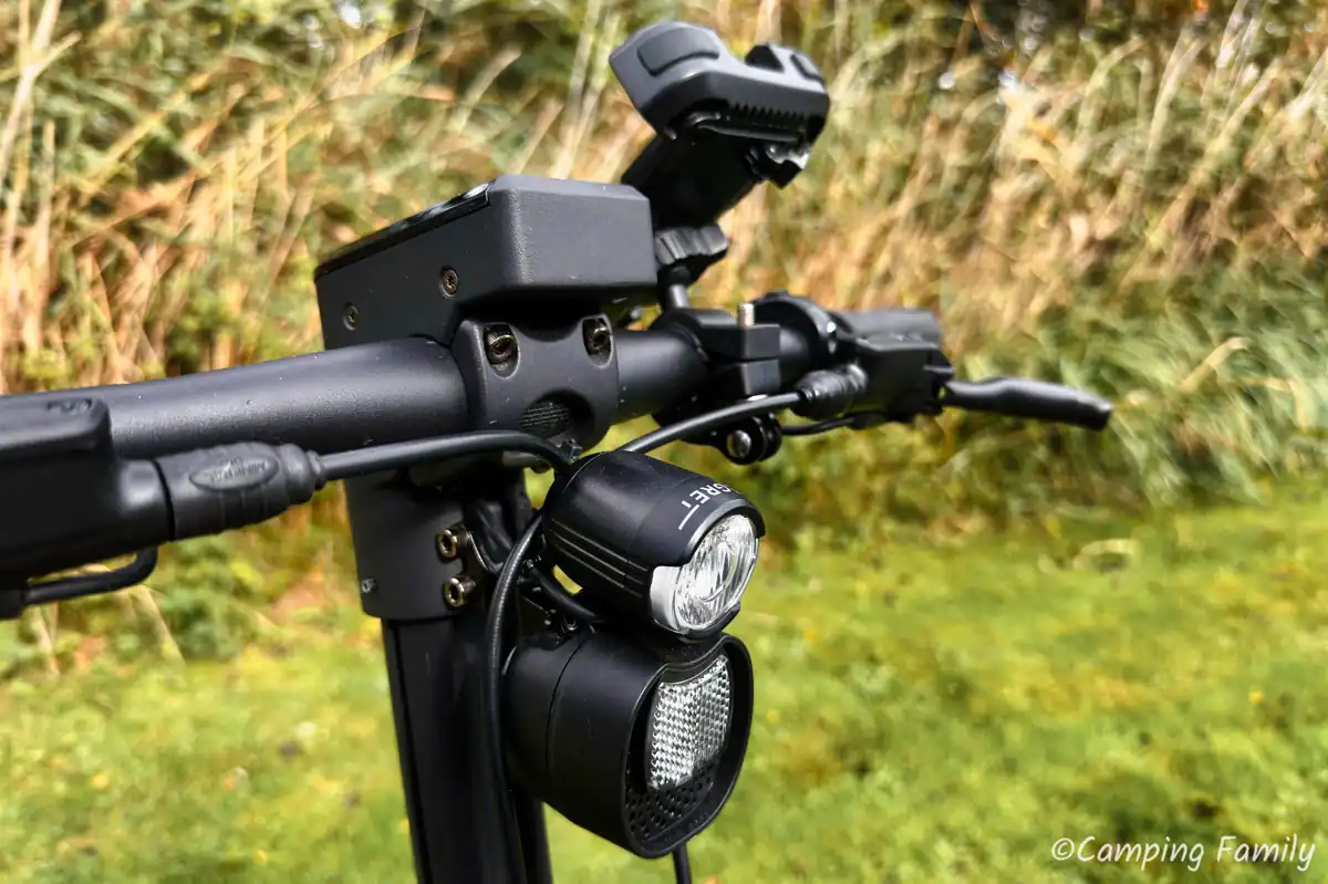 Die hydraulischen Scheibenbremsen haben ihren Job ebenso gut gemacht, wie bei Nachfahrt das vordere und gut verstellbare LED-Frontlicht mit seinen 40 Lux. Zwar verfügt der Egret Pro über eine elektronische Wegfahrsperre, aber wegschieben ließe er sich damit dennoch und die Eingabe der 4-stelligen Pin ist ohne App am Scooter selbst nicht wirklich gut umgesetzt.
