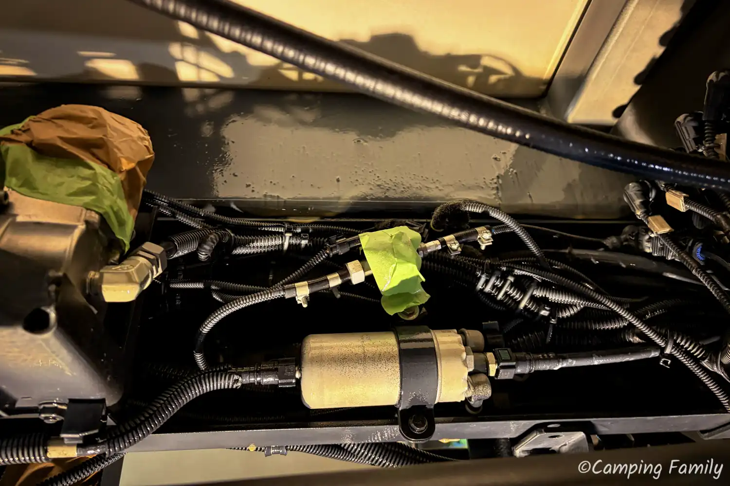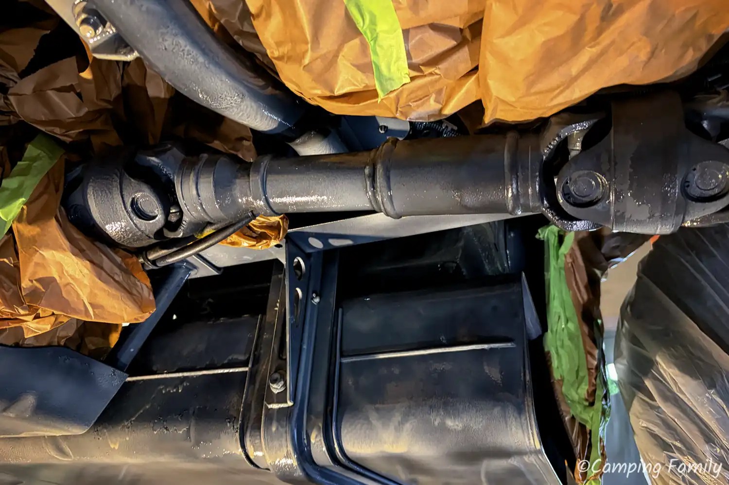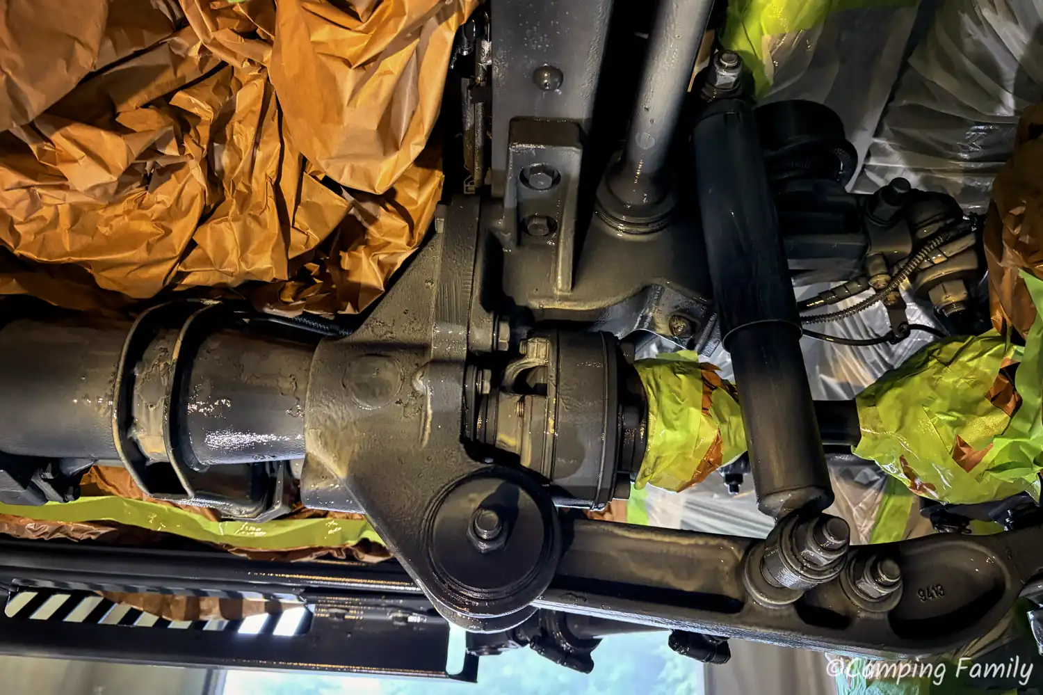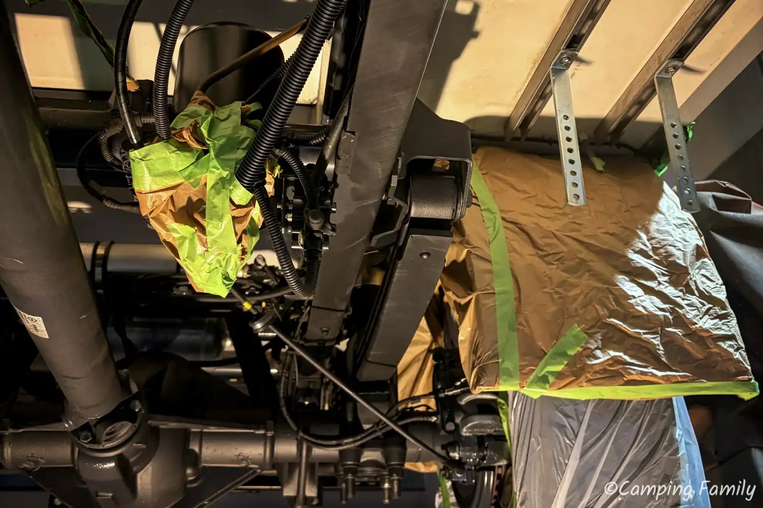Ganz nach dem Kunstprojekt des Künstlerehepaars Christo und Jeanne-Claude, wurde unser Daily mit Folie abgeklebt, also all die Teile, welche nicht versiegelt werden sollen oder dürfen. Das ist an einem Wohnmobil schon eine Menge an Rohren, Schläuchen und Anbauteilen, sodass man den Zeitaufwand für diesen notwendigen Schritt nicht unterschätzen sollte.